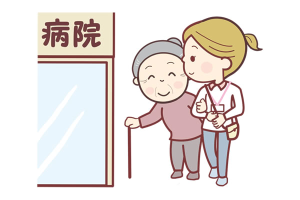 乗車・降車の介助、病院受付までの付き添い、会計や薬受け取りの補助など